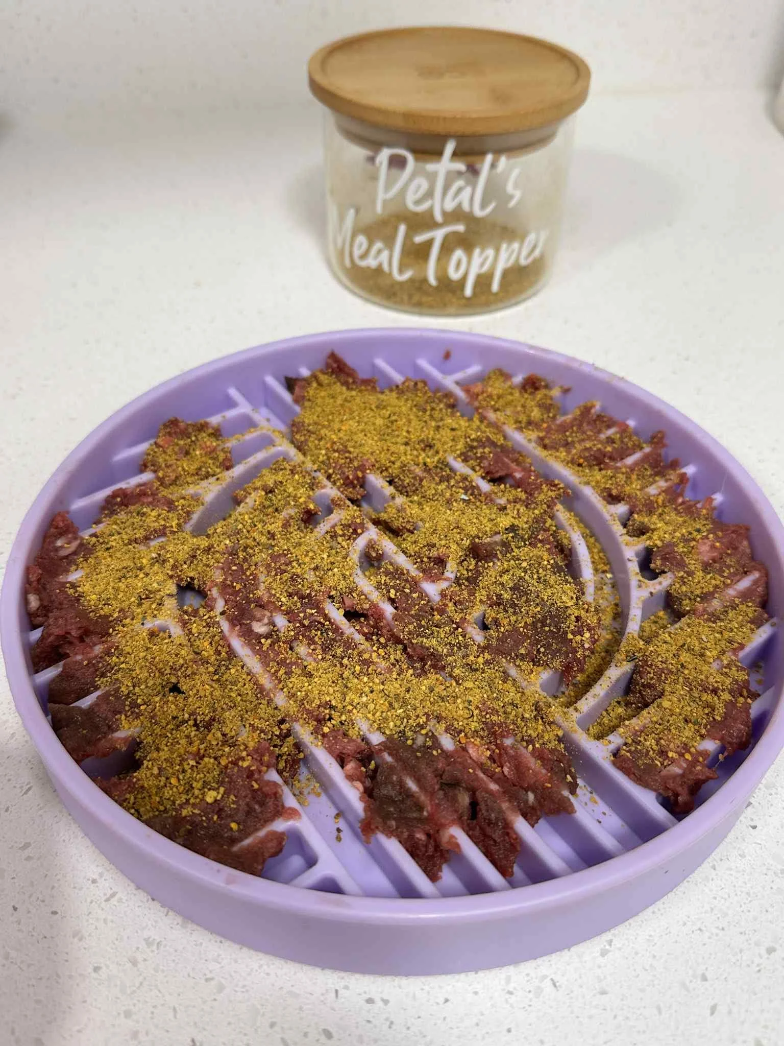 Raw diet – Feeding raw has done wonders for her skin and coat, not to mention her energy levels. It even helps with her snoring!