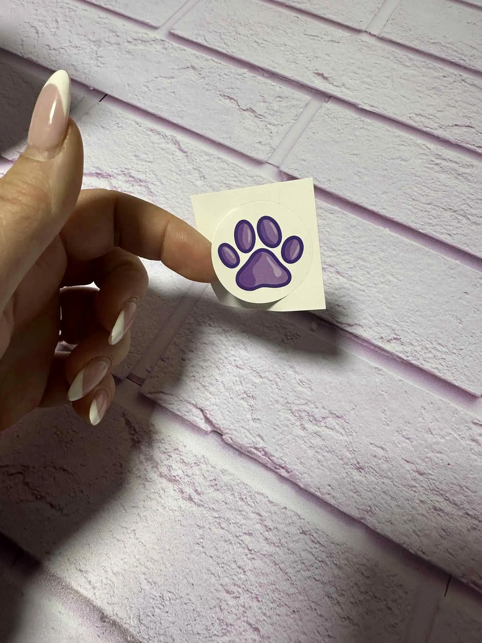 A 3.5cm x 3.5cm kiss-cut circle with my purple paw print for sealing tissue paper